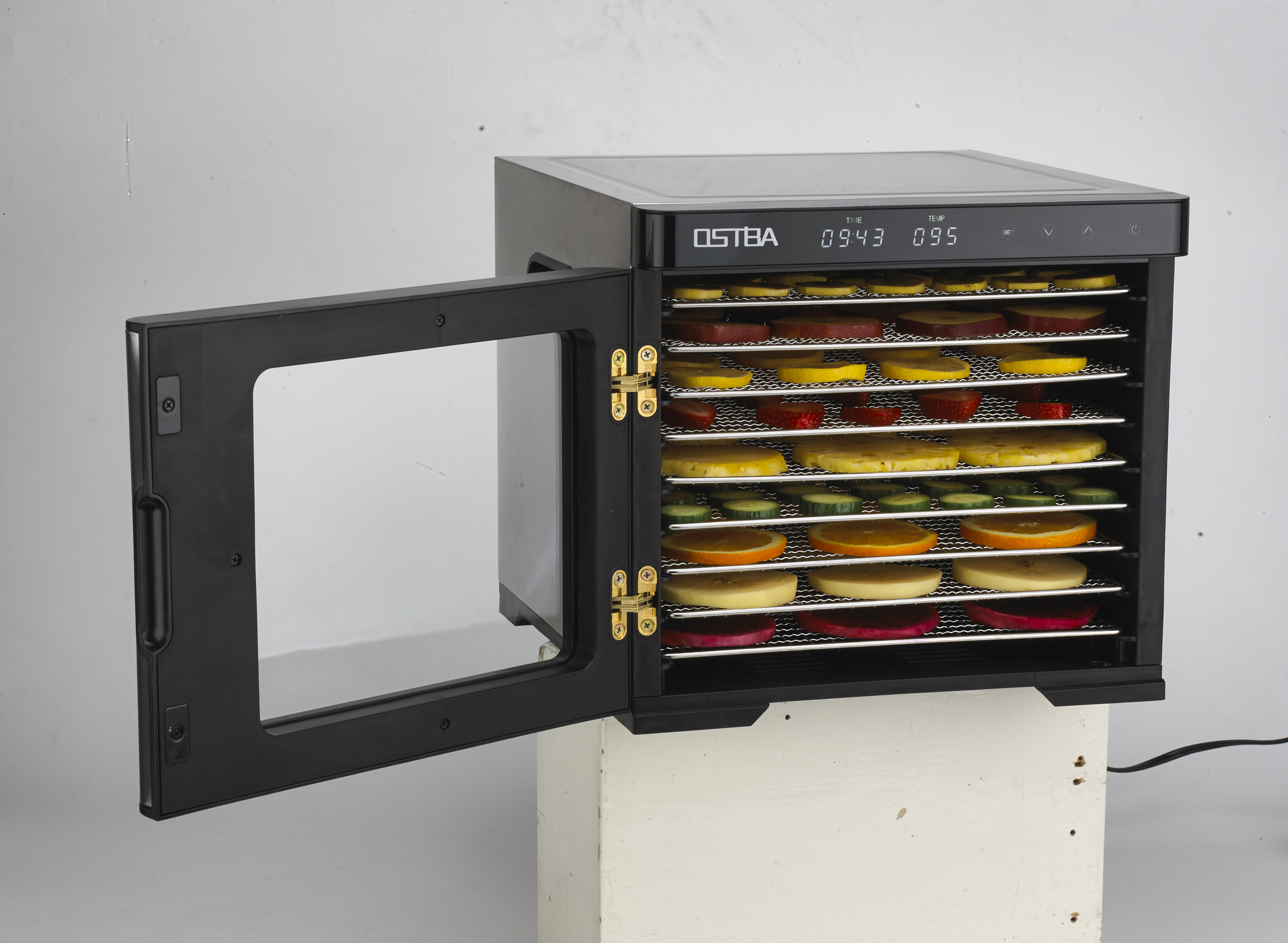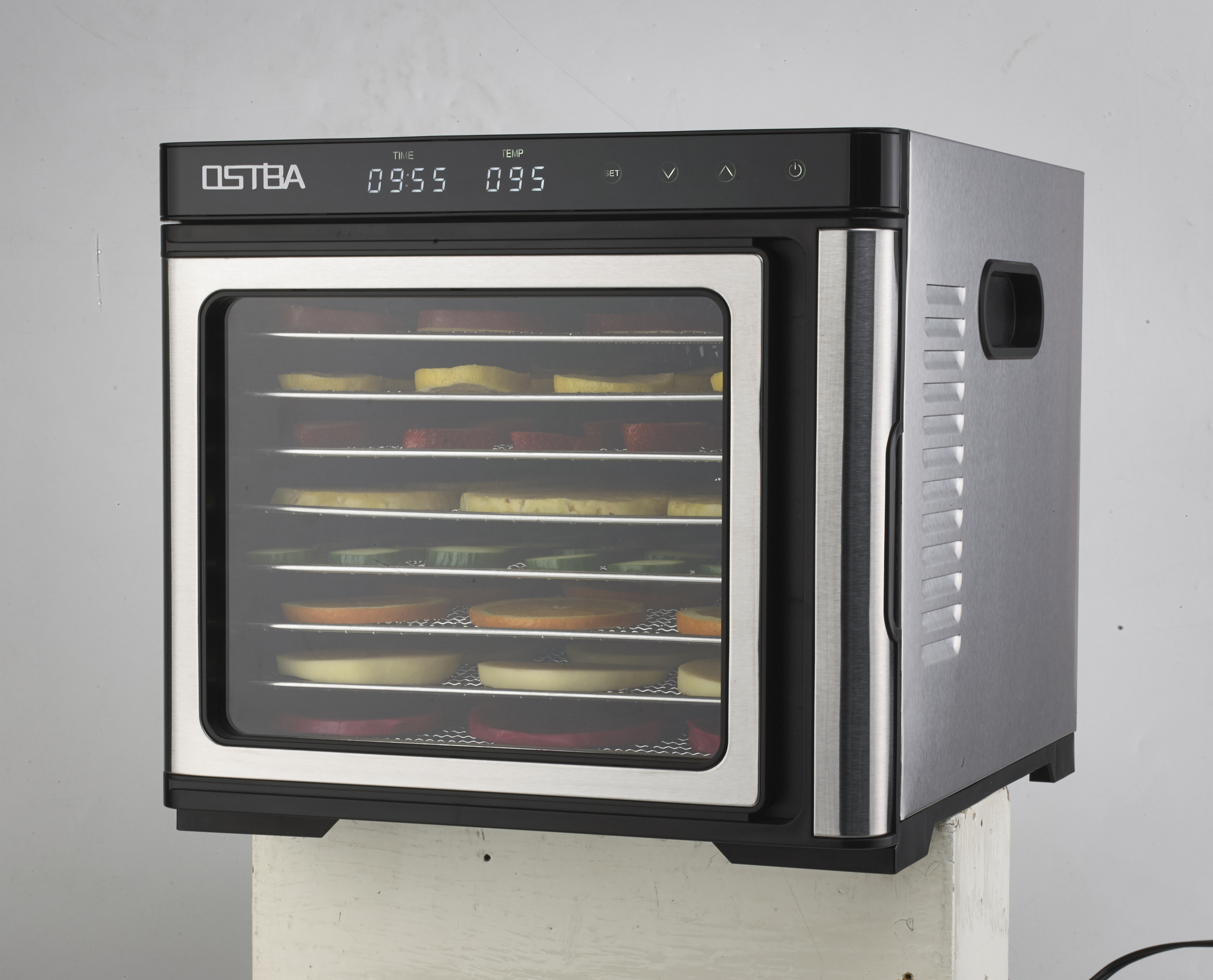 ເຄື່ອງອົບນ້ຳອາຫານ, ຖາດສະແຕນເລດ 9 ອັນ, ເຄື່ອງລະບາຍນ້ຳສຳລັບອາຫານ ແລະ ເໝັນ, ສະໝຸນໄພ, ຜັກ, ໝາກໄມ້, ປັບອຸນຫະພູມໄດ້ ແລະ ຈັບເວລາ 48H, ປ້ອງກັນຄວາມຮ້ອນເກີນ, 1000W.